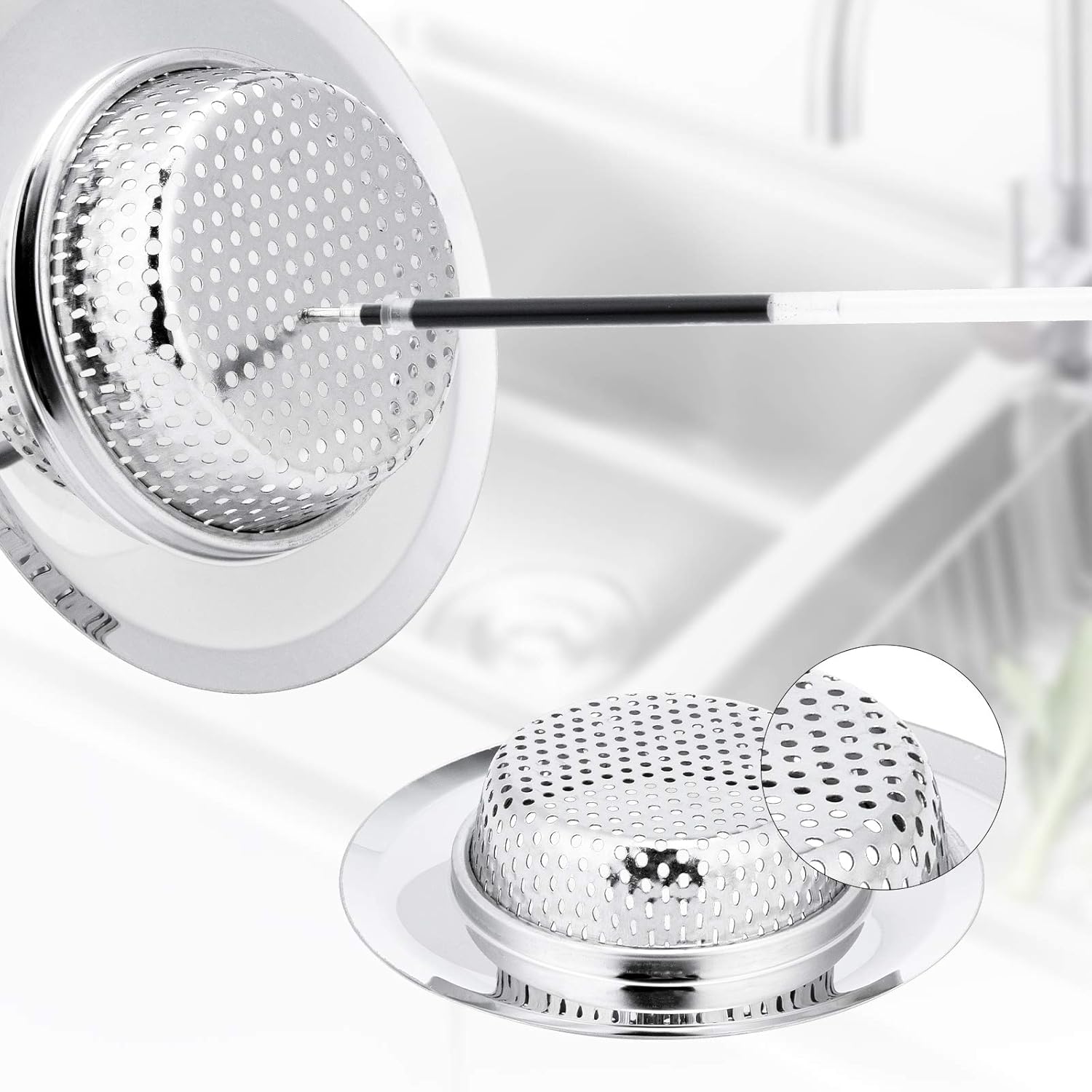 They easily cover the drain to stop water from flowing. This quick video leaves out all the unnecessary commentary and focuses on the process. Essential for keeping drains clear of clogs and discouraging pests like fruit flies, the humble sink strainer is an item that should be found in every kitchen. It is made of stainless steel housing that is high in quality and ensures its durability. Unlike other strainers, this model is easy to clean and keeping its shiny and pristine look can be done with simple soap and water.