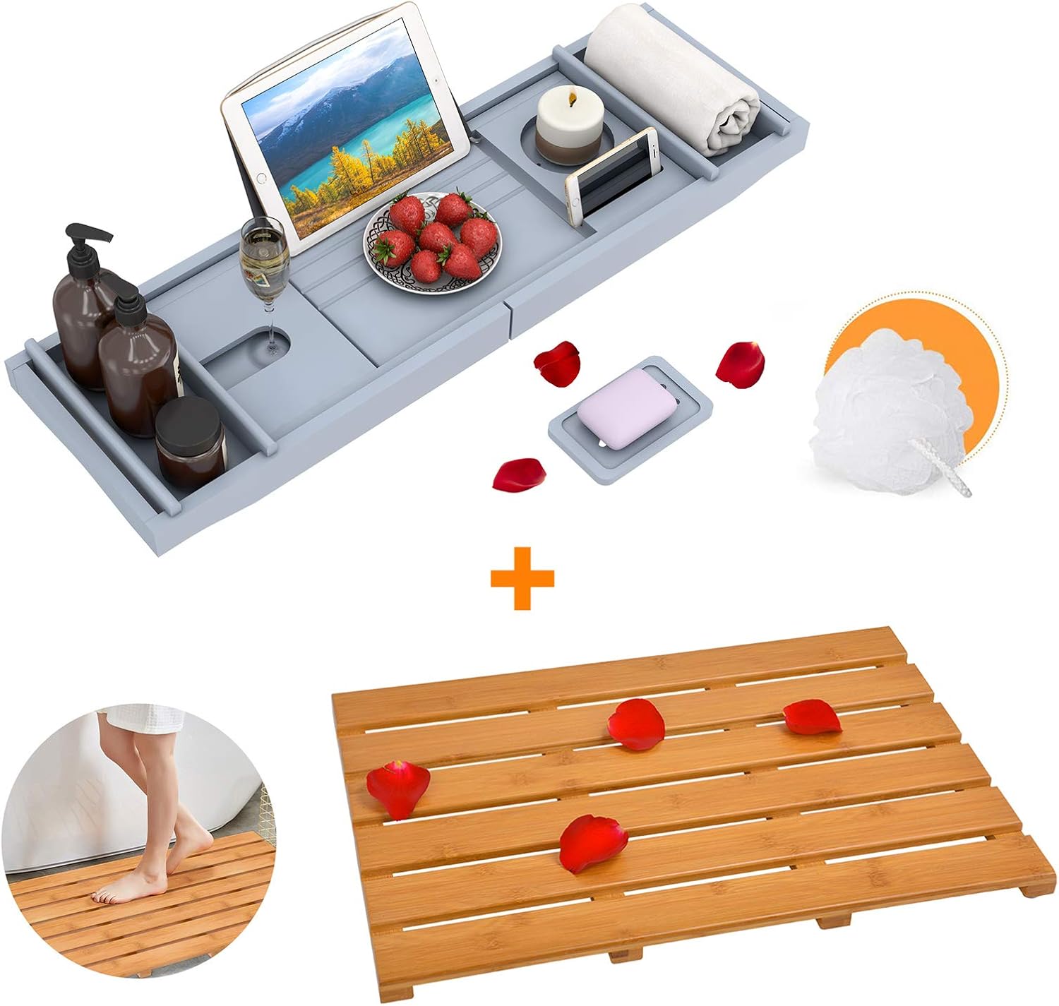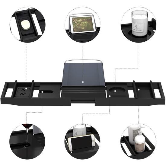 Langria bamboo bathtub caddy tray with extending sides. Domax bathtub caddy tray expandable bamboo bath tub tray for luxury bath with book holder and free soap dish brown. 99 list list price $131.09 $ 131. 1 new from $37.99 3 used from $25.28 free shipping. Domax bathtub caddy tray expandable bamboo tub tray for luxury bath with book holder and free soap dish $ 37.99 in stock.